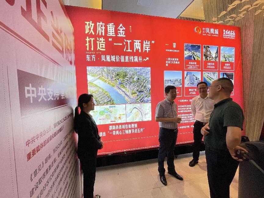 座谈会后,在县委宣传部田涧、何刚强等同志的陪同下,课题组实地参观考察了邵阳县天子湖国家湿地公园建设项目和东方凤凰城建设项目,深入了解生态旅游和现代产业发展对邵阳县推动以县城为重要载体的城镇化建设所产生的带动效能,详细了解了邵阳县县城“一带两心三轴四节点五片”整体规划。
