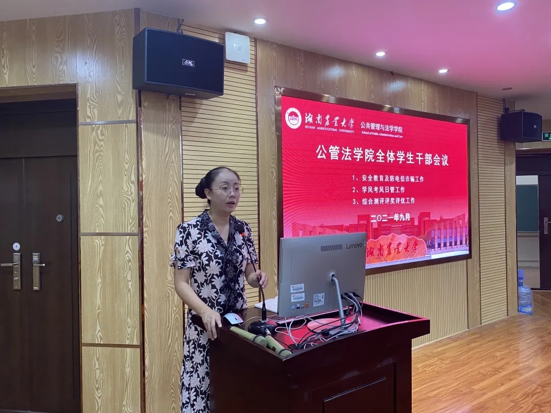 9月28日中午,公共管理与法学学院于第十教学楼北102召开2021-2022学年全体学生干部第一次会议。学院党委副书记周芳,学院学工组老师出席。学院全体本科生、研究生班级负责人及学院团学干部到会。