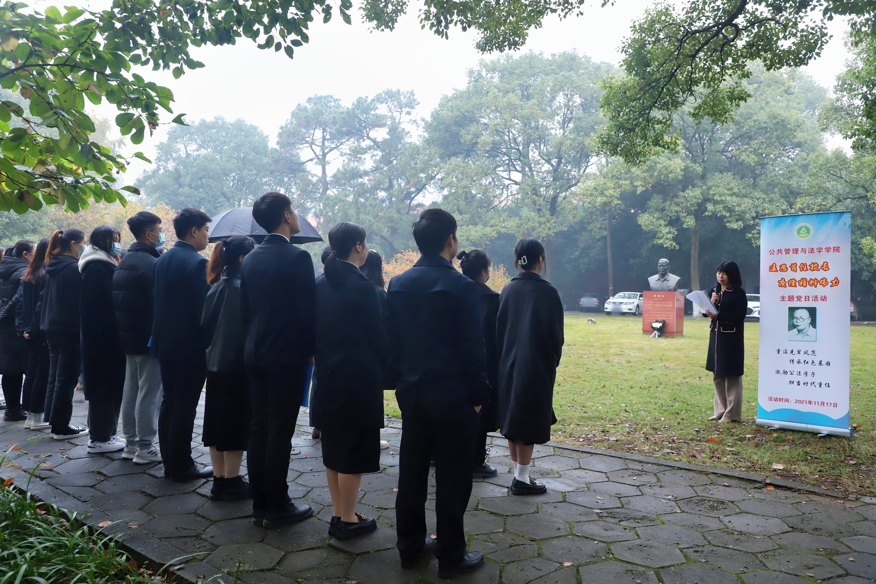 11月17日上午,公共管理与法学学院在湖南农业大学首任校长李毅之先生的纪念雕塑前开展“追思首任校长,赓续精神伟力”主题党日活动。