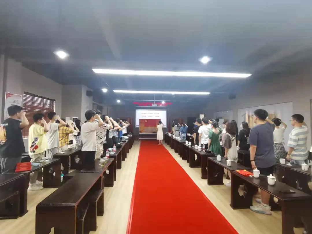 全体毕业生党员面向党旗,重温入党誓词,用铿锵有力、掷地有声的誓言向党庄严承诺,再次感受入党时的使命感与责任感,坚定初入党时的初心,矢志筑梦向未来的决心。随后,学院党委书记、副书记、党支部书记给每一位在场毕业生党员送上政治生日卡,现场气氛热烈活跃。