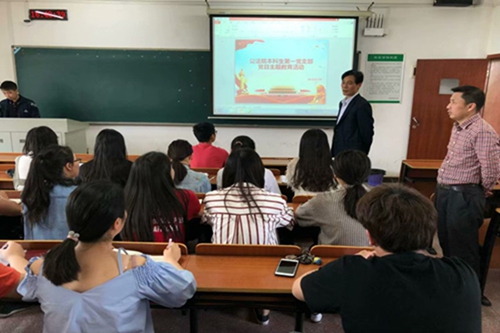 2018年4月19日下午,我校公共管理与法学学院本科生第一党支部于十教南301开展党日主题教育活动。除本科生第一党支部同志参与学习讨论外,公法院党委书记徐合奎、党委副书记刘峻峰到场进行指导。