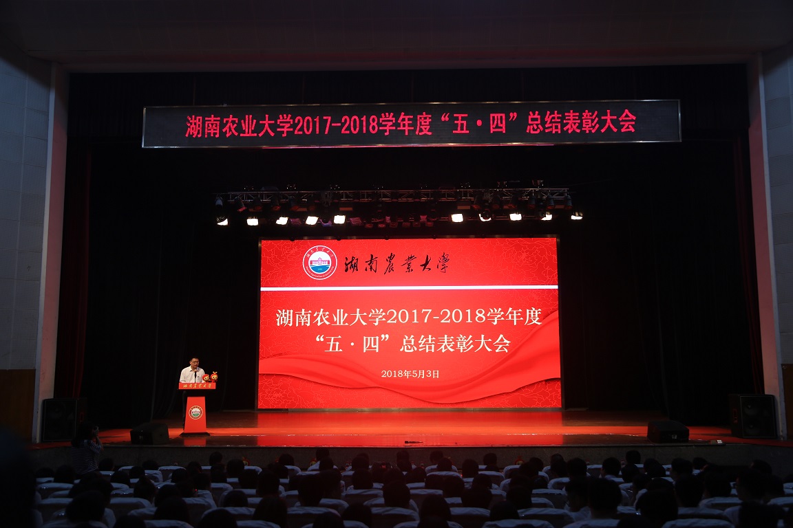 为传承五四精神,增强我校青年的责任感与使命感,5月3日,我校于大礼堂举行2017-2018学年度“五•四”总结表彰大会。莅临本次表彰大会的有我校党委书记周清明,校长符少辉,校党委副书记卢向阳,副校长曾福生,校党委委员、副校长陈岳堂,校党委委员、副校长张立,校党委委员贺建华,校长助理周贤君,校关工委常务副主任彭克勤。校团委副书记丁彦担任主持人,学院相关职能负责人及各学院代表等参加本次表彰大会。