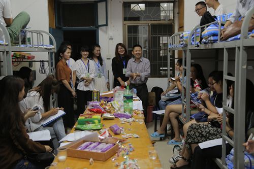 在领导的热切关心和助班的有序组织下,各班班会有声有色地开展着。在芷兰宿舍7栋312寝室,17级法学一班班主任罗杭春给班上学生分享自己的心得,叮嘱同学们一定要学会管理自我,珍惜大学时光;在芷兰宿舍14栋104寝室,公管的新生们在助班的组织下,依次进行自我介绍和才艺表演,寝室瞬间充满欢声笑语……此外,为了促进新生工作进一步开展,各班助班重点就军训内务细节、寝室安全问题、防骗防盗问题等作了详细说明,嘱咐新生一要提高警惕意识,保障自身财产安全和人身安全;二要遵守军训中学校各项要求,相互监督提醒;三要注意防晒避暑,保持良好的身体素质。同时,助班对接下来的活动安排进行了布置,并在会议最后选出了班级军训负责人和寝室长以协助今后的班级管理。