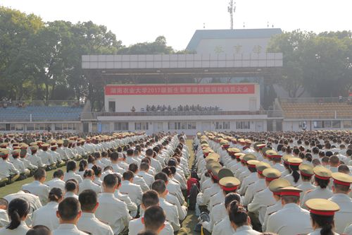 为发挥国防教育特色学校引领作用,培养广大学子艰苦奋斗精神,推动我校国防教育事业创新发展,2017年9月16日上午,我校2017级新生军事技能训练动员大会于东田径场隆重举行。副校长张立,国防教育工作领导小组成员、2017级军训辅导员和全体新生参与动员大会,大会由学生部部长戴荣四主持。全校近七千名新生齐聚一堂,共同迎接这场关乎意志的考验。