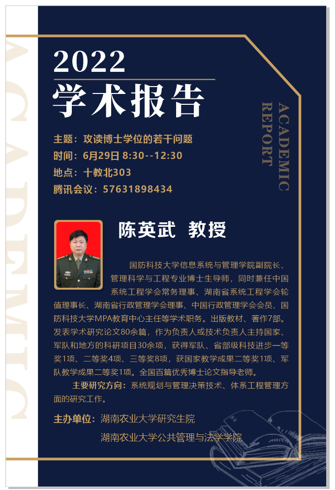授课名师:国防科技大学,少将、博导、"全国优秀百篇博士论文“指导老师,陈英武教授为公法院博士生开展了题为“攻读博士学位的若干问题”的生动授课。