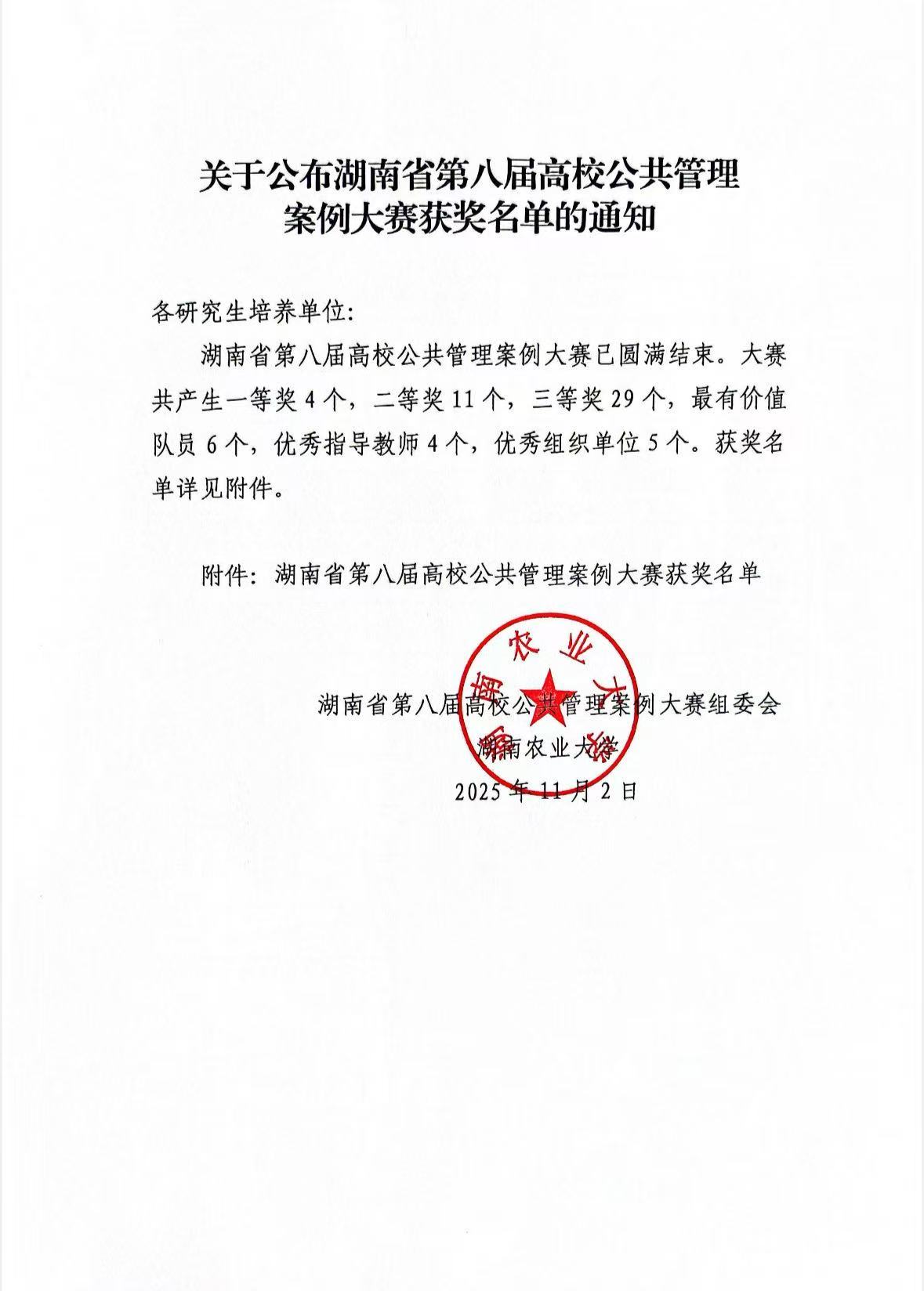 关于公布湖南省第八届高校公共管理案例大赛获奖名单的通知