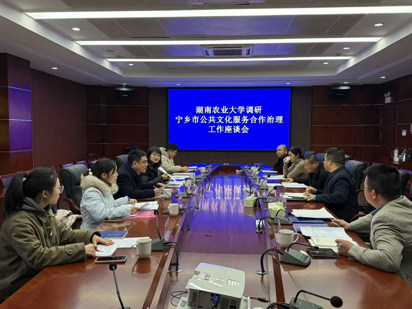 2026年2月5日,吴松江教授率学院公共文化服务合作治理课题组赴宁乡市开展公共文化服务合作治理与非遗传承促进县域富民产业发展专题调研。调研座谈会由宁乡市文化旅游广电体育局二级主任科员宋太军主持,宁乡市文旅广电体育局相关科室负责人、“宁乡四小碟”第四代非遗传承人杨硕、“沙田包子”非遗传承人吴达求等企业代表参与座谈。